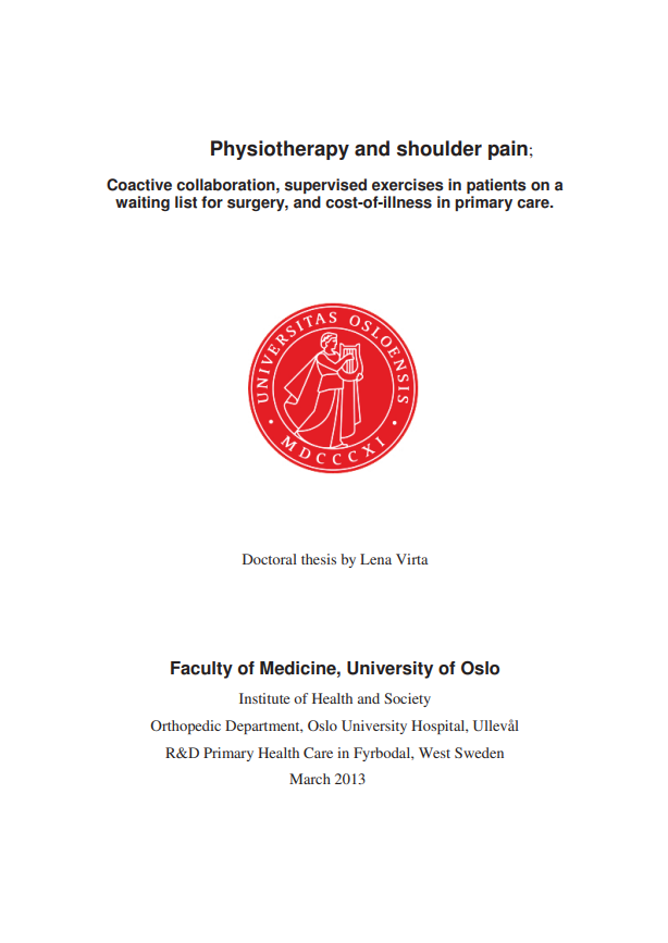 Physiotherapy and shoulder pain; Coactive collaboration, supervised exercises in patients on a waiting list for surgery, and cost-of-illness in primary care.