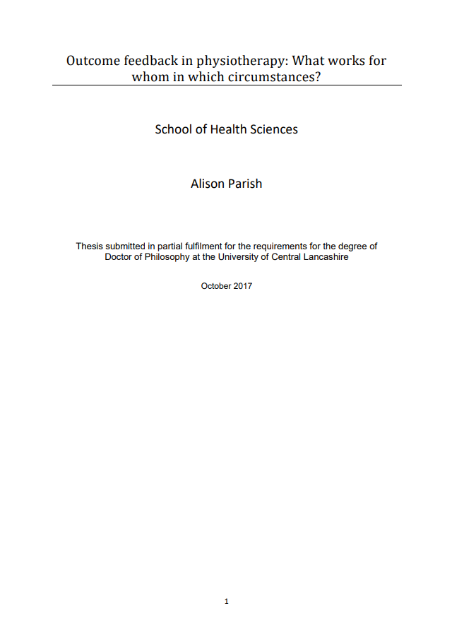 Outcome feedback in physiotherapy: What works for whom in which circumstances?