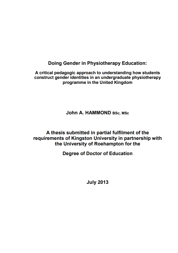 A critical pedagogic approach to understanding how students construct gender identities in an undergraduate physiotherapy programme in the United Kingdom