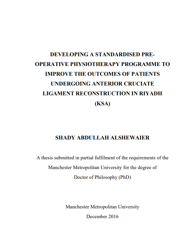 DEVELOPING A STANDARDISED PRE-OPERATIVE PHYSIOTHERAPY PROGRAMME TO IMPROVE THE OUTCOMES OF PATIENTS UNDERGOING ANTERIOR CRUCIATE LIGAMENT RECONSTRUCTION IN RIYADH (KSA)